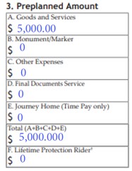- The Total Amount is the sum of the Goods and Services, Monument/Marker, Other Expenses, Final Document Services and Journey Home (A+B+C+D+E)