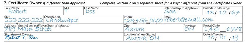 - If the owner of the certificate is someone other than the applicant named, complete this section and obtain the owner’s signature.