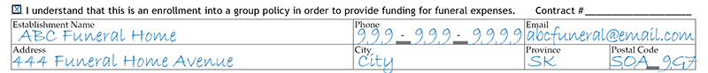 - If a funeral establishment cheque is used to pay the client’s premium, a photocopy of the client’s payment to the establishment must be submitted with the enrollment form.
